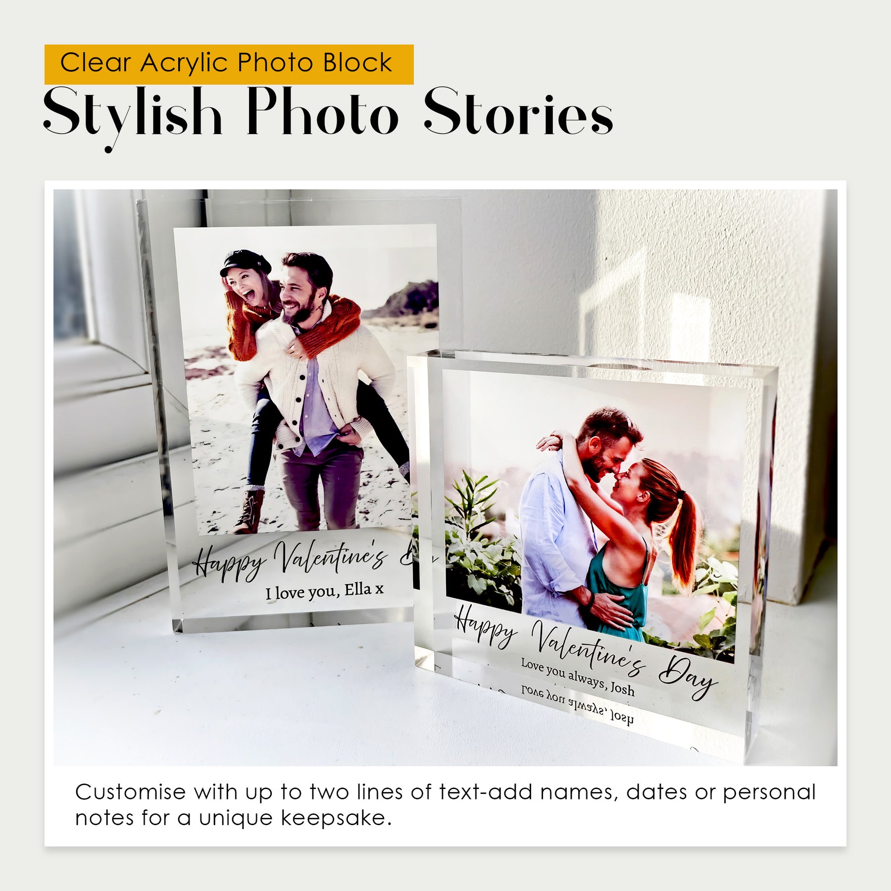 Turn your favourite moments into timeless treasures with our custom memory block. This personalised acrylic photo block with text makes the perfect custom photo gift for any occasion.